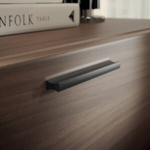 Le maniglie STILO da 15 cm colore Brunito sono un tocco di design per cassetti e armadi.