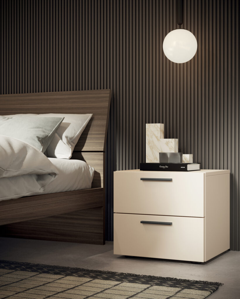 All’interno armadi e cassetti sono realizzati con la splendida finitura in rilievo JUTA.