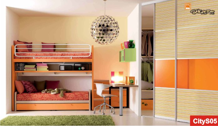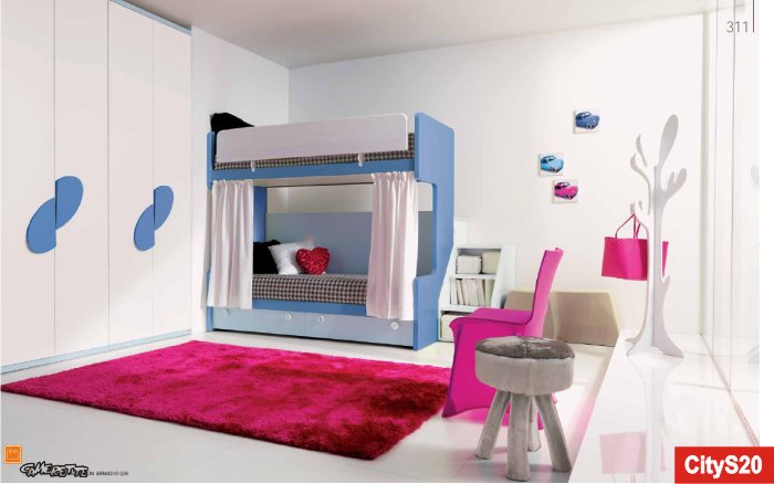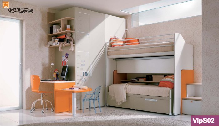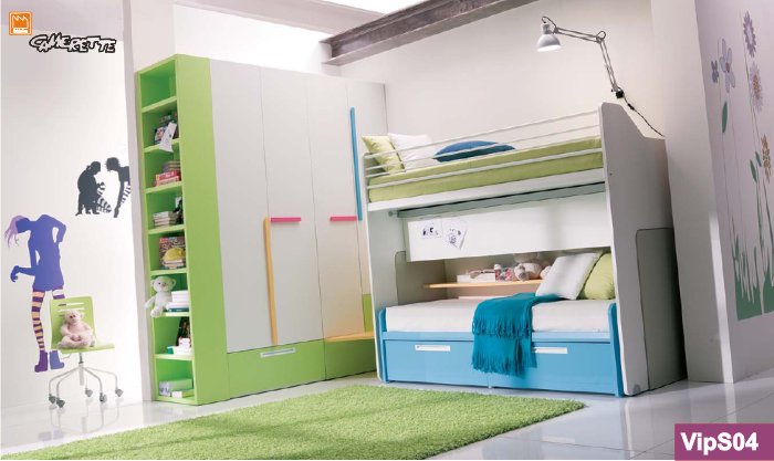 L’idea di fare il letto superiore scorrevole è un’idea dello staff di Fabbrica Camerette, sviluppata poi per le aziende del gruppo Doimo (Doimo CityLine e Dielle). Il meccanismo brevettato che abbiamo ideato permette di avere il letto superiore che scorre nascondendo la pedana e lasciando durante il giorno tutto lo spazio per giocare a centro stanza.