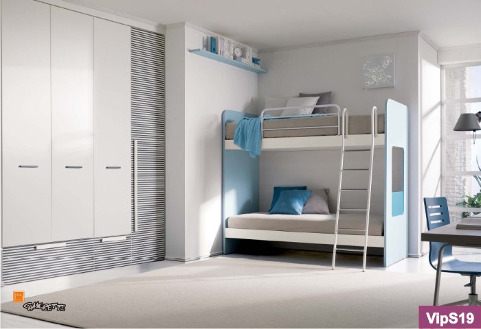 La salita del letto a castello può essere con scaletta a pioli oppure con una più comoda scala a gradini. L’ideale sarebbe di avere non solo la scala laterale ma anche una pedana sul lato lungo del letto. Questa soluzione ha misure un poco pù ingombranti, il problema può essere ovviato grazie al letto a castello scorrevole. La scala spesso è sfruttata per contenere, con le scale a cassettoni, mentre lo spazio della pedana si può utilizzare a libreria.